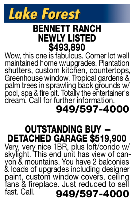BENNETT RANCH NEWLY LISTED $493,890 Wow, this one is fabulous. Corner lot well maintained home w/upgrades. Plantation shutters, custom kitchen, countertops, Greenhouse window. Tropical gardens & palm trees in sprawling back grounds w/ pool, spa & ire pit. Totally the entertainer's dream. Call for further information.