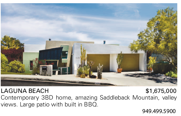 LAGUNA BEACH $1,675,000 Contemporary 3BD home, amazing Saddleback Mountain, valley views. Large patio with built in BBQ.