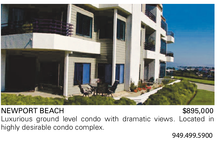 NEWPORT BEACH $895,000 Luxurious ground level condo with dramatic views. Located in highly desirable condo complex.