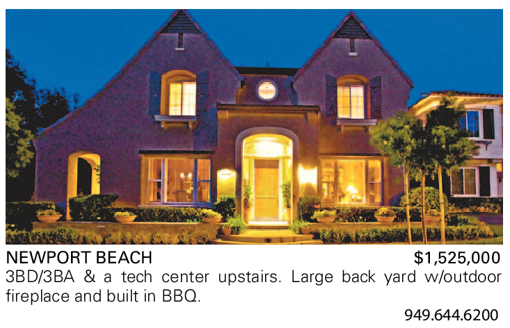 NEWPORT BEACH $1,525,000 3BD/3BA & a tech center upstairs. Large back yard w/outdoor fireplace and built in BBQ.