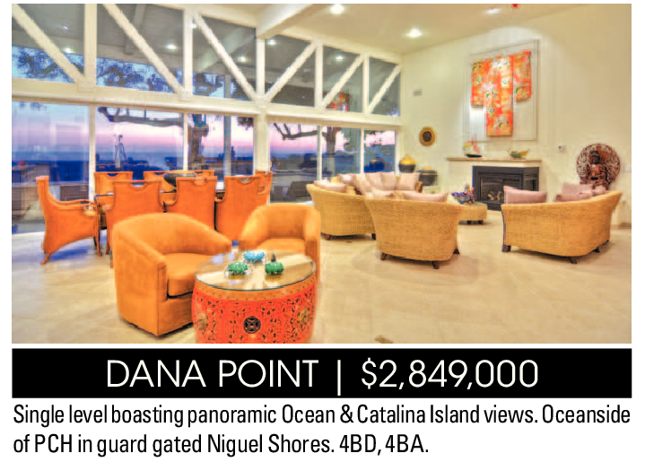 Single level boasting panoramic Ocean & Catalina Island views. Oceanside of PCH in guard gated Niguel Shores. 4BD, 4BA.