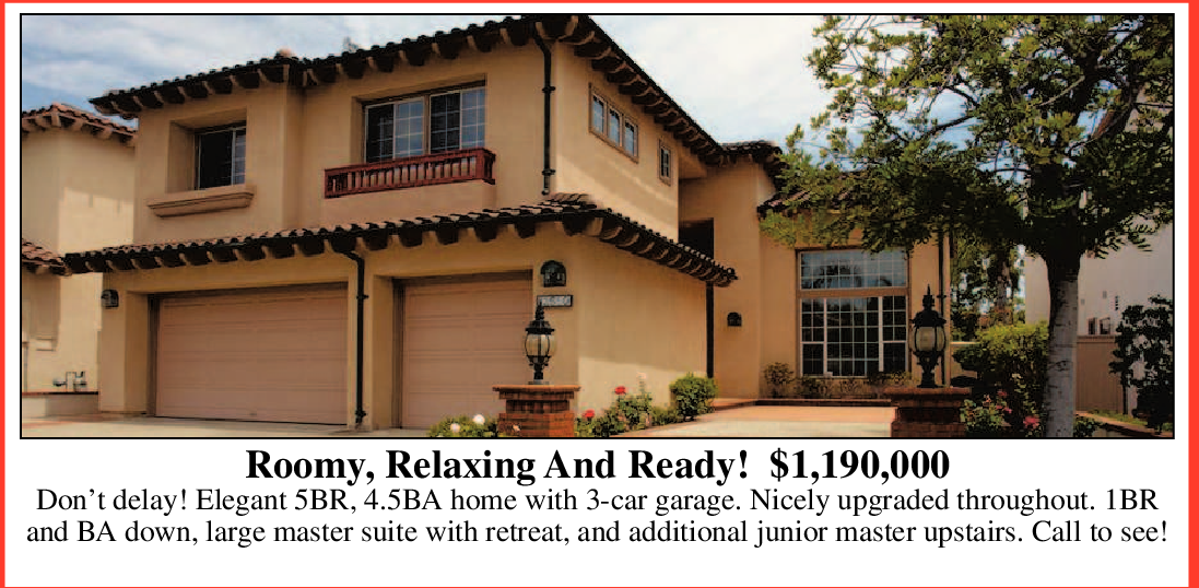 Roomy, Relaxing And Ready! $1,190,000 Don’t delay! Elegant 5BR, 4.5BA home with 3-car garage. Nicely upgraded throughout. 1BR