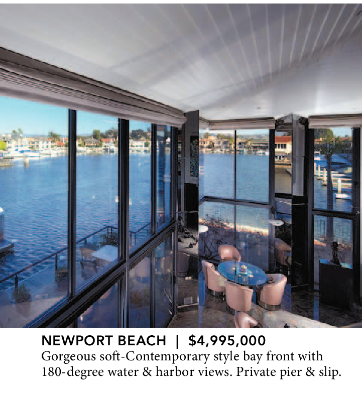 NEWPORT BEACH | $4,995,000 Gorgeous soft-Contemporary style bay front with 180-degree water & harbor views. Private pier & slip.