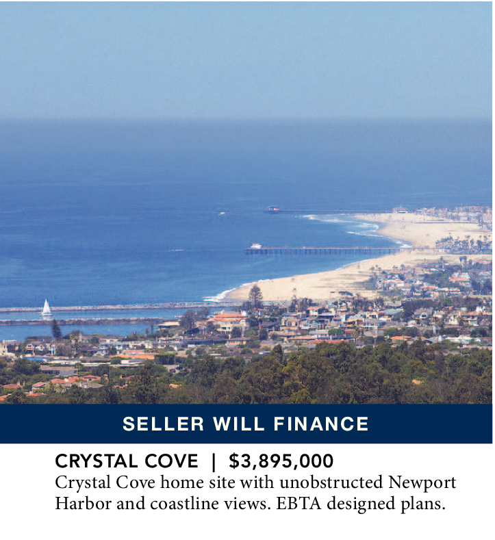 CRYSTAL COVE | $3,895,000 Crystal Cove home site with unobstructed Newport Harbor and coastline views. EBTA designed plans.