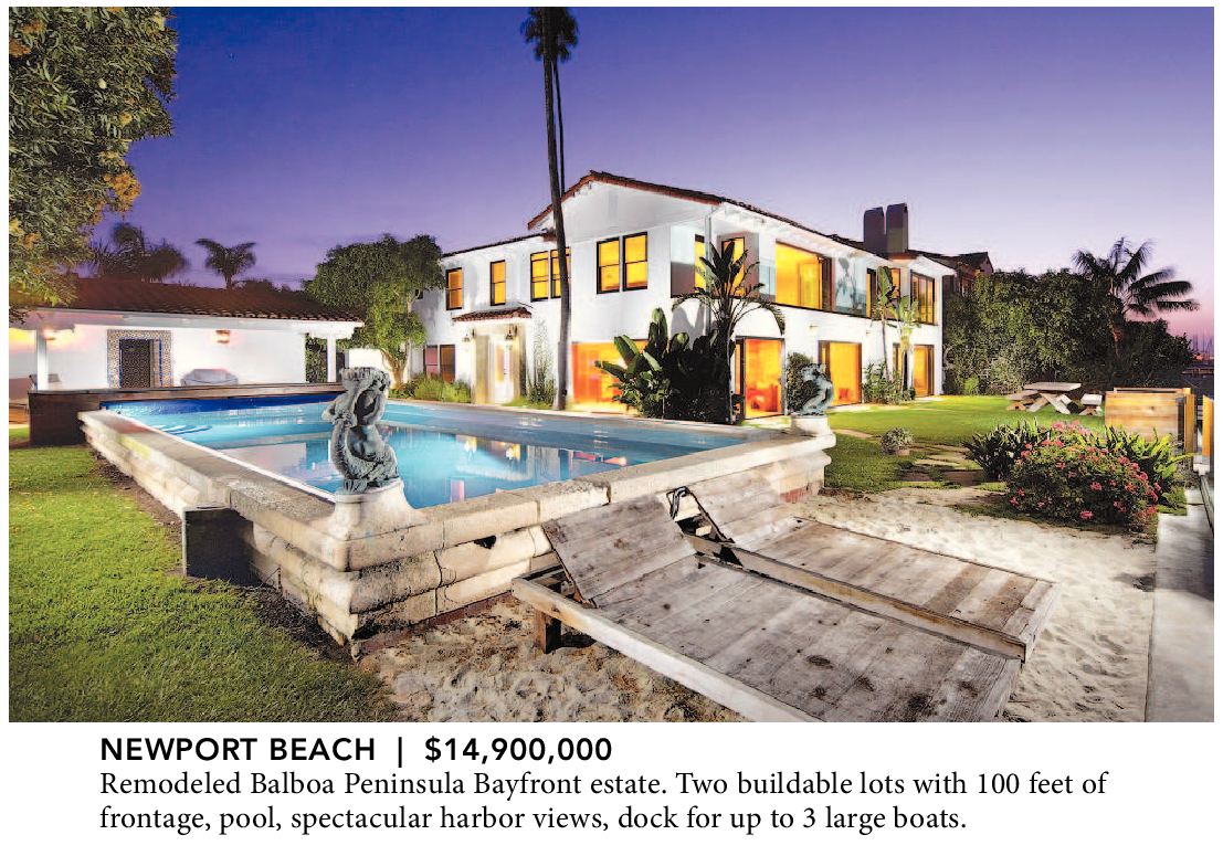 NEWPORT BEACH | $14,900,000 Remodeled Balboa Peninsula Bayfront estate. Two buildable lots with 100 feet of frontage, pool, spectacular harbor views, dock for up to 3 large boats.