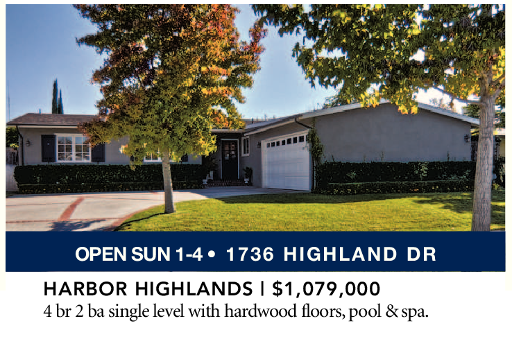 HARBOR HIGHLANDS | $1,079,000 4 br 2 ba single level with hardwood floors, pool & spa.