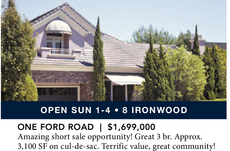 ONE FORD ROAD | $1,699,000 Amazing short sale opportunity! Great 3 br. Approx. 3,100 SF on cul-de-sac. Terrific value, great community!