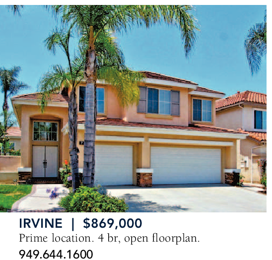 IRVINE | $869,000 Prime location. 4 br, open floorplan. 949.644.1600