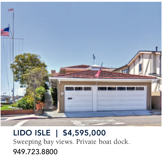 lidO iSlE | $4,595,000 Sweeping bay views. Private boat dock. 949.723.8800
