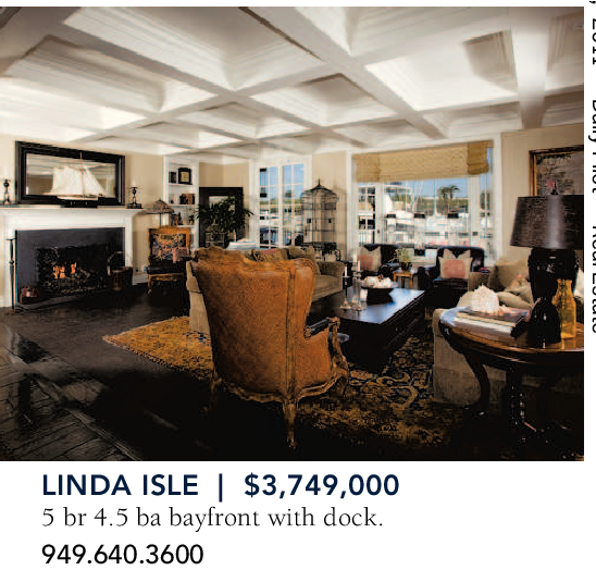 liNdA iSlE | $3,749,000 5 br 4.5 ba bayfront with dock. 949.640.3600
