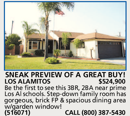 LOS ALAMITOS $524,900 Be the first to see this 3BR, 2BA near prime Los Al schools. Step-down family room has gorgeous, brick FP & spacious dining area w/garden window! (516071) CALL (800) 387-5430
