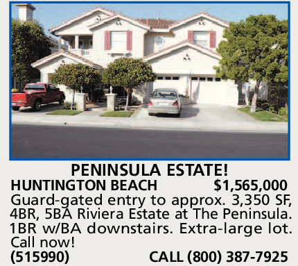 HUNTINGTON BEACH $1,565,000 Guard-gated entry to approx. 3,350 SF, 4BR, 5BA Riviera Estate at The Peninsula.