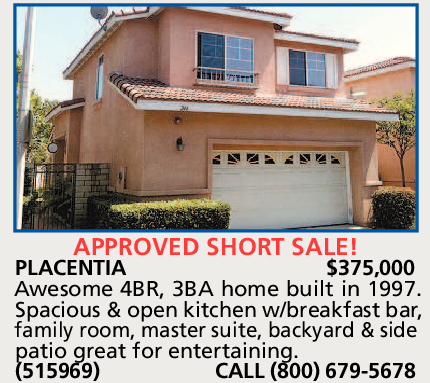 PLACENTIA $375,000 Awesome 4BR, 3BA home built in 1997.