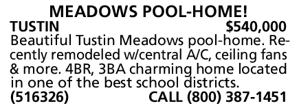 Beautiful Tustin Meadows pool-home. Recently remodeled w/central A/C, ceiling fans