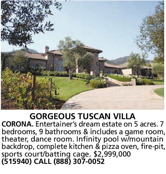 GORGEOUS TUSCAN VILLA CORONA. Entertainer’s dream estate on 5 acres. 7