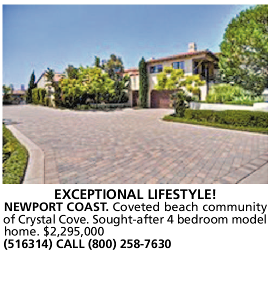 of Crystal Cove. Sought-after 4 bedroom model home. $2,295,000 (516314) CALL (800) 258-7630