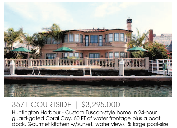Huntington Harbour - Custom Tuscan-style home in 24-hour guard-gated Coral Cay. 60 FT of water frontage plus a boat dock. Gourmet kitchen w/sunset, water views, & large pool-size.