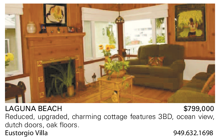 LAGUNA BEACH $799,000 Reduced, upgraded, charming cottage features 3BD, ocean view, dutch doors, oak floors. Eustorgio Villa 949.632.1698