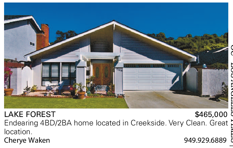 LAKE FOREST $465,000 Endearing 4BD/2BA home located in Creekside. Very Clean. Great location. Cherye Waken 949.929.6889
