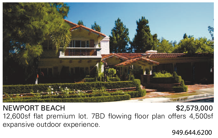 NEWPORT BEACH $2,579,000 12,600sf flat premium lot. 7BD flowing floor plan offers 4,500sf expansive outdoor experience.
