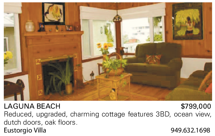 LAGUNA BEACH $799,000 Reduced, upgraded, charming cottage features 3BD, ocean view, dutch doors, oak floors. Eustorgio Villa 949.632.1698