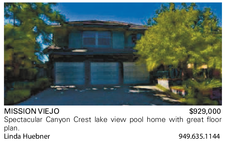 MISSION VIEJO $929,000 Spectacular Canyon Crest lake view pool home with great floor plan. Linda Huebner 949.635.1144