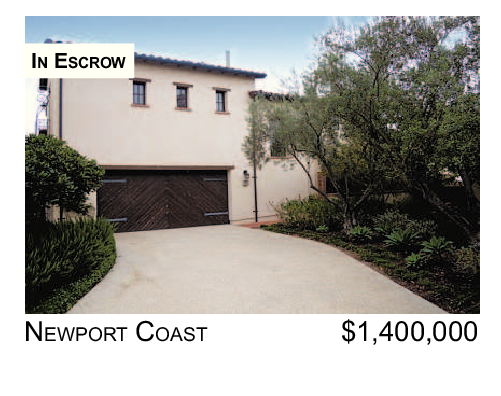 IN ESCROW NEWPORT COAST $1,400,000 See also