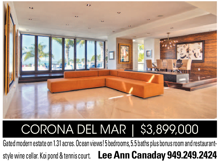 Gated modern estate on 1.31 acres. Ocean views! 5 bedrooms, 5.5 baths plus bonus room and restaurantstyle wine cellar. Koi pond & tennis court. Lee Ann Canaday 949.249.2424