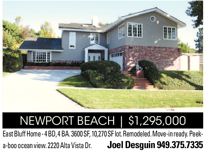 East Bluff Home - 4 BD, 4 BA. 3600 SF, 10,270 SF lot. Remodeled. Move-in ready. Peeka-boo ocean view. 2220 Alta Vista Dr. Joel Desguin 949.375.7335