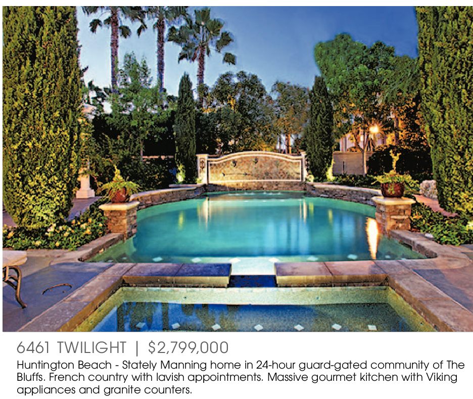 Huntington Beach - Stately Manning home in 24-hour guard-gated community of The Bluffs. French country with lavish appointments. Massive gourmet kitchen with Viking appliances and granite counters.