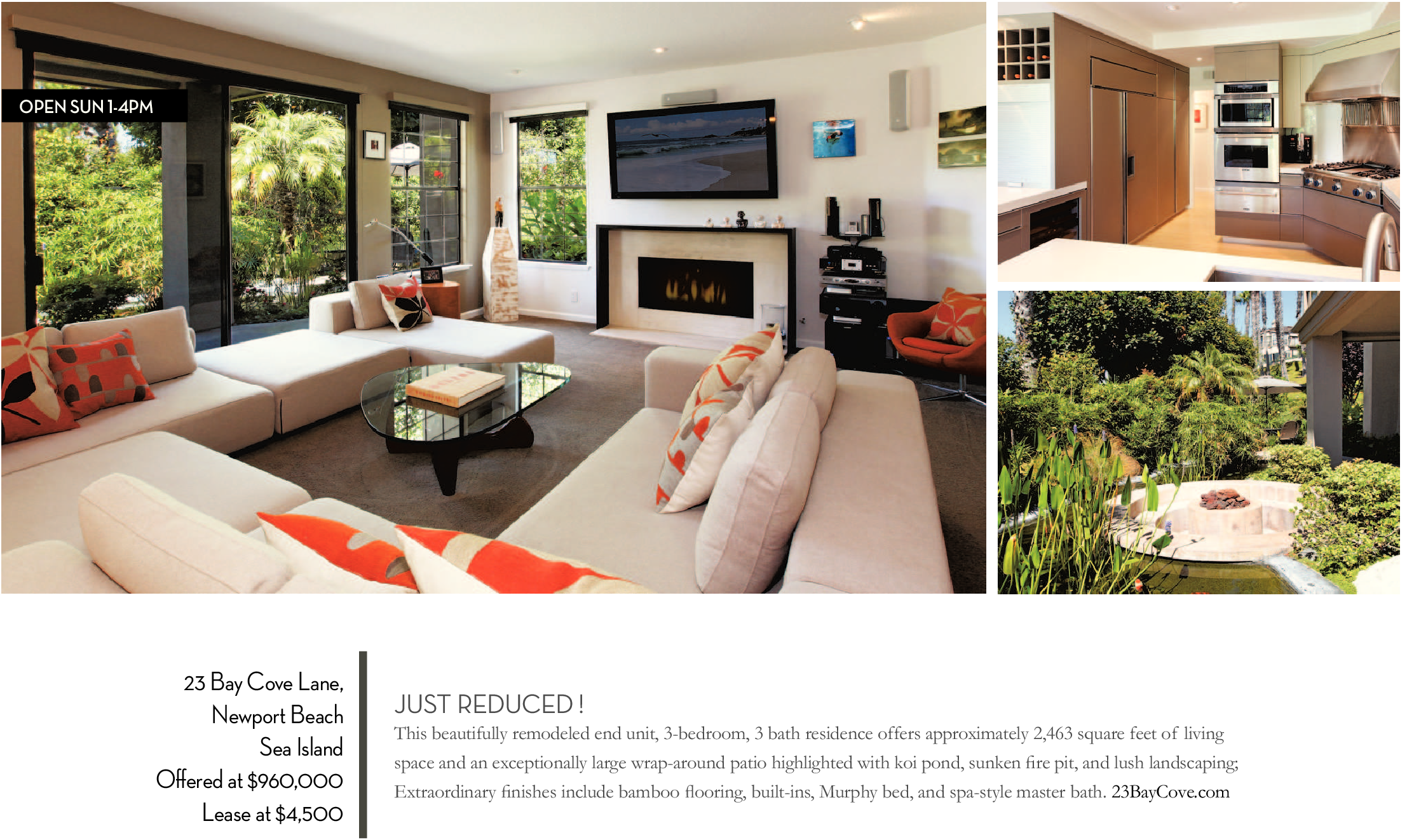 23 Bay Cove Lane, Newport Beach Sea Island Offered at $960,000 Lease at $4,500