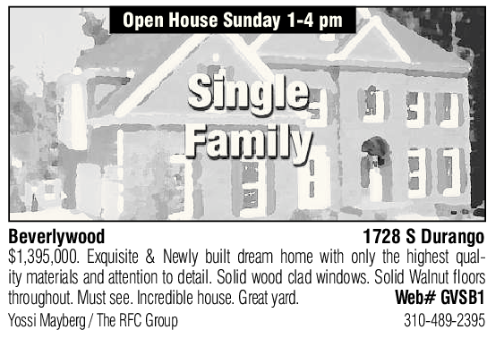 Beverlywood 1728 S Durango $1,395,000. Exquisite & Newly built dream home with only the highest quality materials and attention to detail. Solid wood clad windows. Solid Walnut loors throughout. Must see. Incredible house. Great yard. Web# GVSB1
