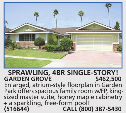 GARDEN GROVE $462,500 Enlarged, atrium-style floorplan in Garden Park offers spacious family room w/FP, kingsized