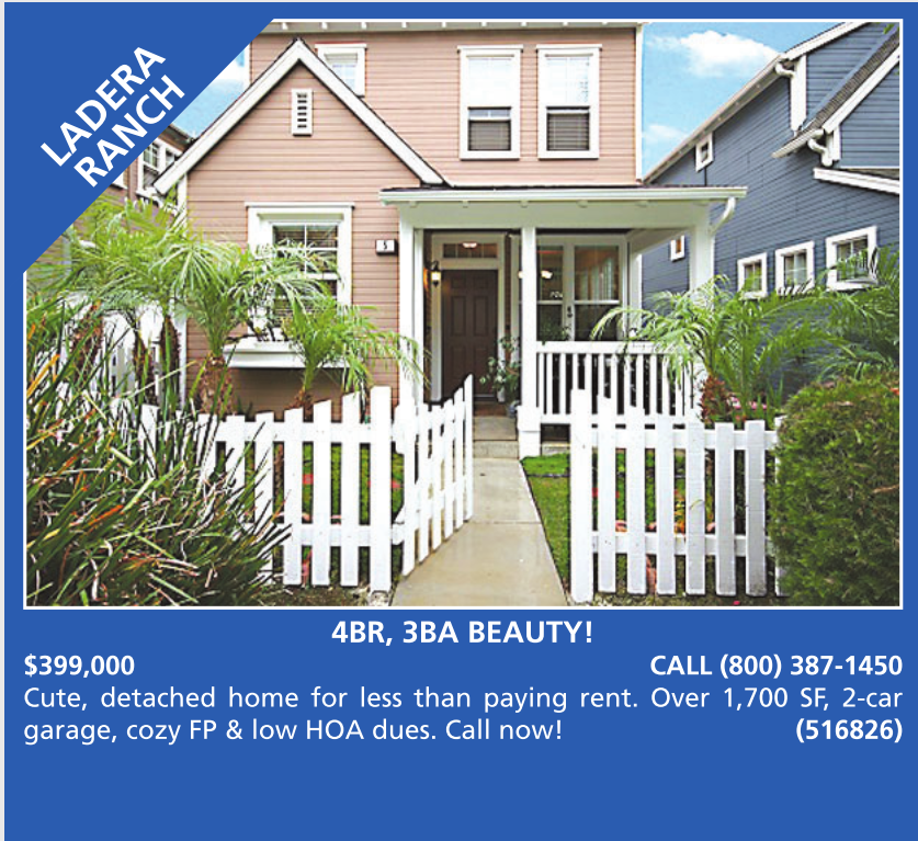 $399,000 CALL (800) 387-1450 Cute, detached home for less than paying rent. Over 1,700 SF, 2-car garage, cozy FP & low HOA dues. Call now! (516826)