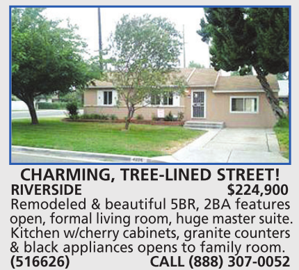 RIVERSIDE $224,900 Remodeled & beautiful 5BR, 2BA features open, formal living room, huge master suite. Kitchen w/cherry cabinets, granite counters & black appliances opens to family room.