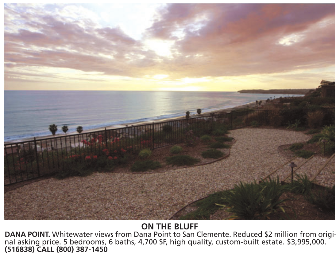 ON THE BLUFF DANA POINT. Whitewater views from Dana Point to San Clemente. Reduced $2 million from original