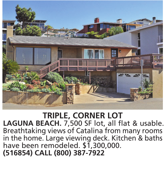 TRIPLE, CORNER LOT LAGUNA BEACH. 7,500 SF lot, all flat & usable.