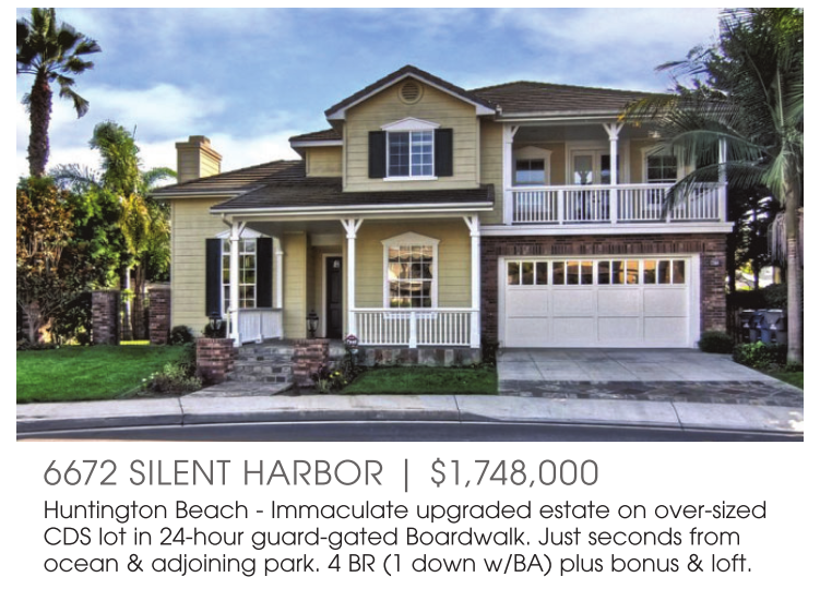 Huntington Beach - Immaculate upgraded estate on over-sized CDS lot in 24-hour guard-gated Boardwalk. Just seconds from ocean & adjoining park. 4 BR (1 down w/BA) plus bonus & loft.