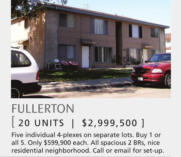 Five individual 4-plexes on separate lots. Buy 1 or all 5. Only $599,900 each. All spacious 2 BRs, nice residential neighborhood. Call or email for set-up.