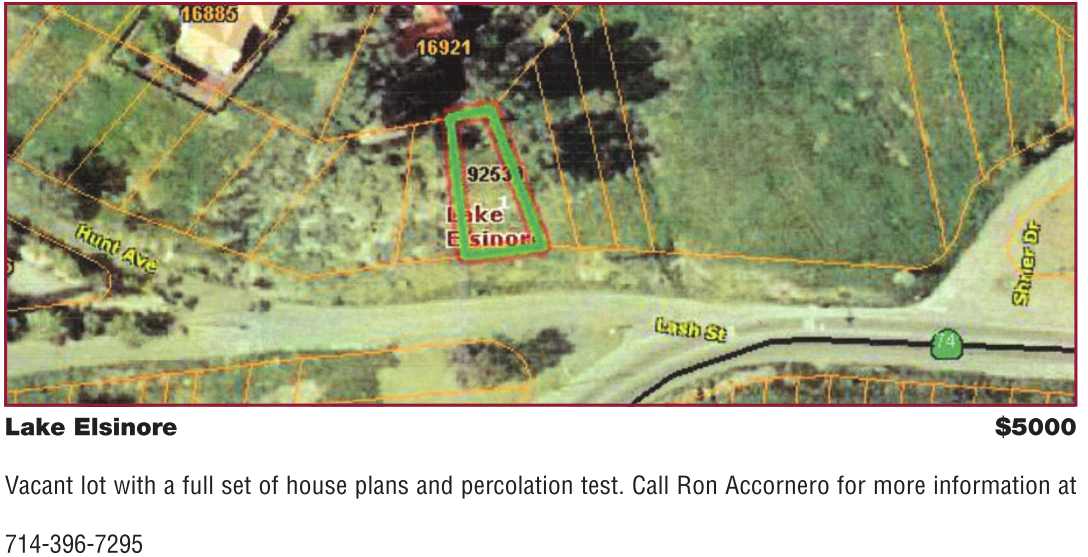 Vacant lot with a full set of house plans and percolation test. Call Ron Accornero for more information at