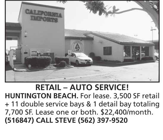 + 11 double service bays & 1 detail bay totaling 7,700 SF. Lease one or both. $22,400/month. (516847) CALL STEVE (562) 397-9520
