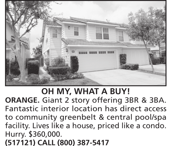 facility. Lives like a house, priced like a condo. Hurry. $360,000. (517121) CALL (800) 387-5417