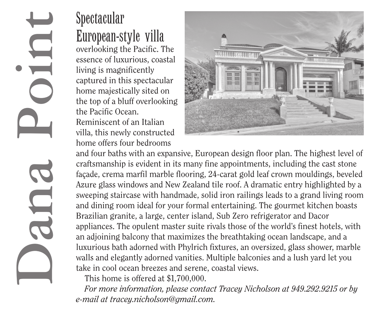 This home is offered at $1,700,000. For more information, please contact Tracey Nicholson at 949.292.9215 or by e-mail at tracey.nicholson@gmail.com.