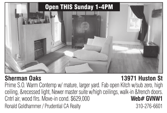 Cntrl air, wood flrs. Move-in cond. $629,000 Web# GVNW1 Ronald Goldhammer / Prudential CA Realty 310-276-6601