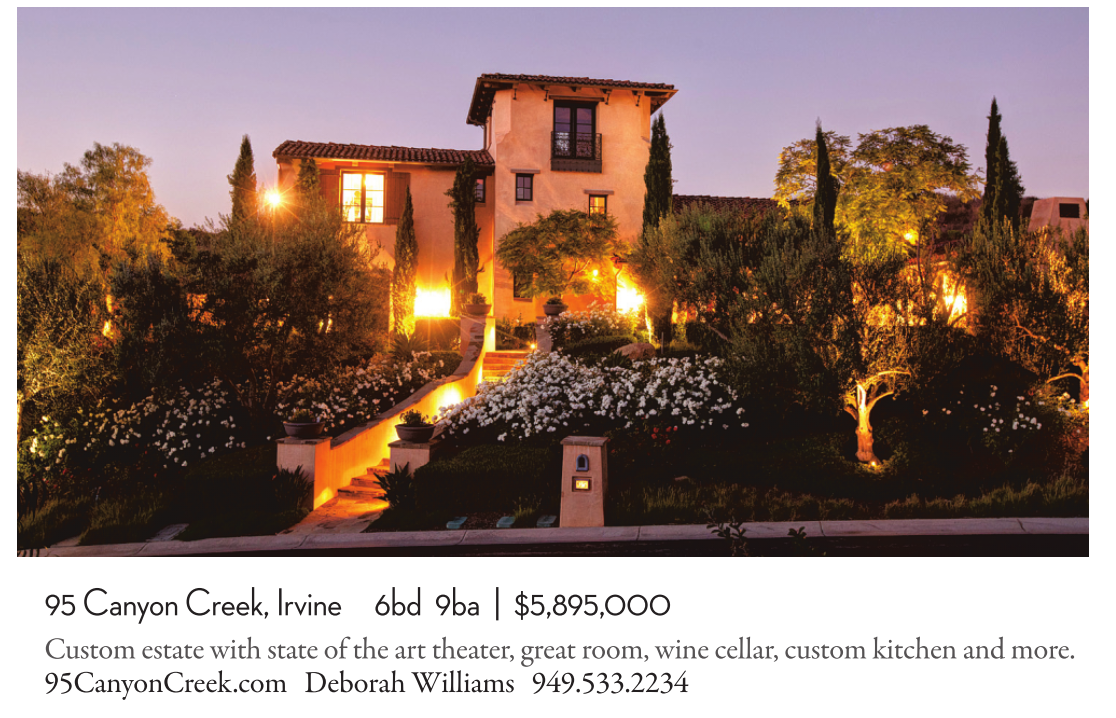 Custom estate with state of the art theater, great room, wine cellar, custom kitchen and more. 95CanyonCreek.com Deborah Williams 949.533.2234