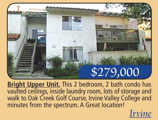 Bright Upper Unit. This 2 bedroom, 2 bath condo has vaulted ceilings, inside laundry room, lots of storage and walk to Oak Creek Golf Course, Irvine Valley College and minutes from the spectrum. A Great location!