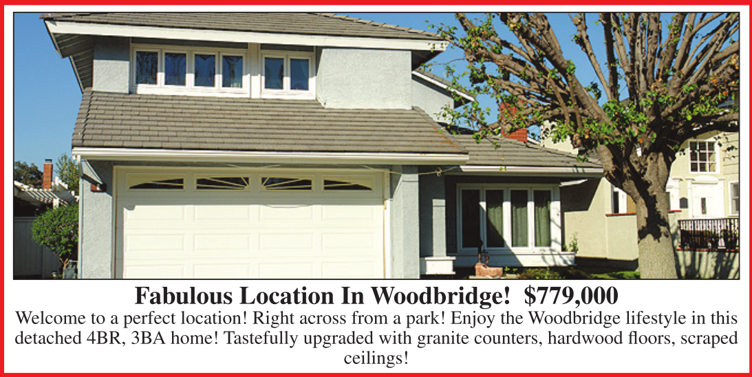 Fabulous Location In Woodbridge! $779,000 Welcome to a perfect location! Right across from a park! Enjoy the Woodbridge lifestyle in this