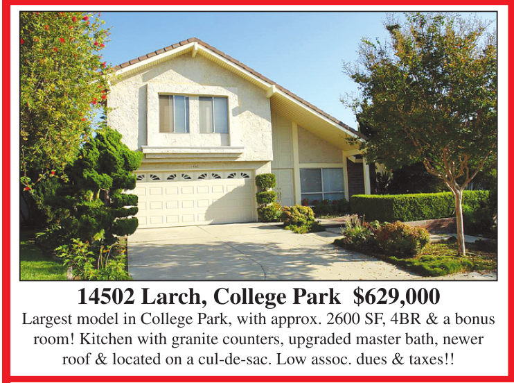 14502 Larch, College Park $629,000 Largest model in College Park, with approx. 2600 SF, 4BR & a bonus