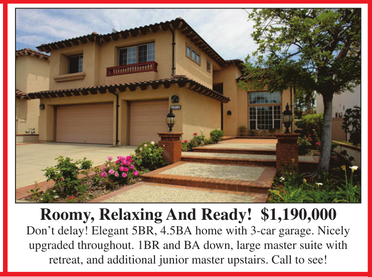 Roomy, Relaxing And Ready! $1,190,000 Don’t delay! Elegant 5BR, 4.5BA home with 3-car garage. Nicely