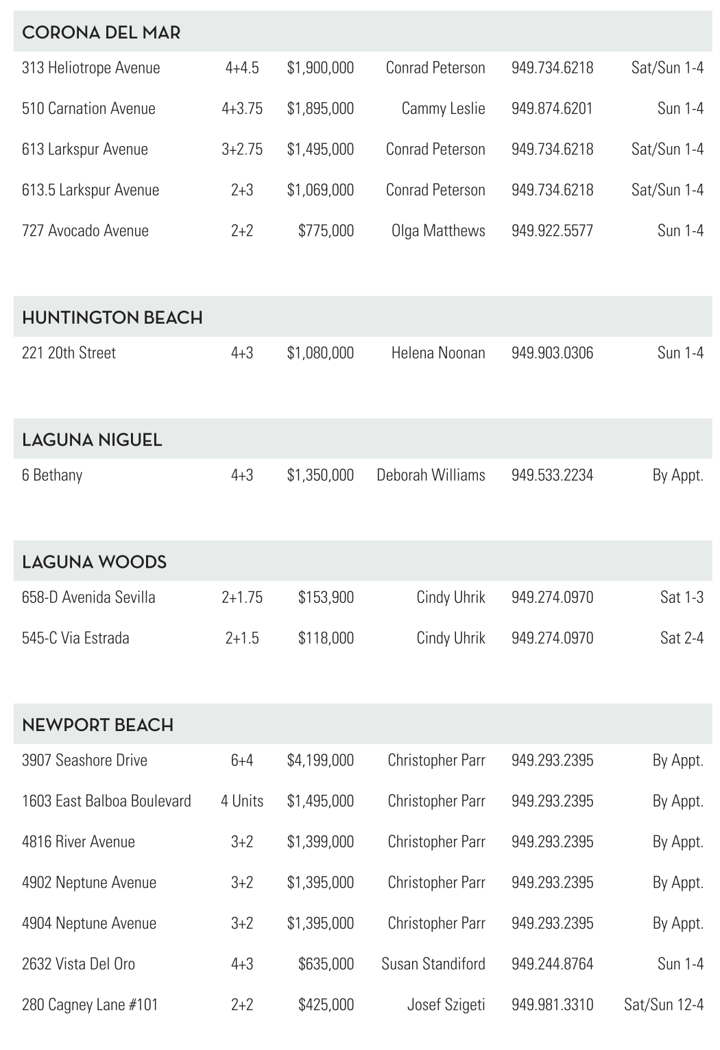 510 Carnation Avenue 4+3.75 $1,895,000 Cammy Leslie 949.874.6201 Sun 1-4